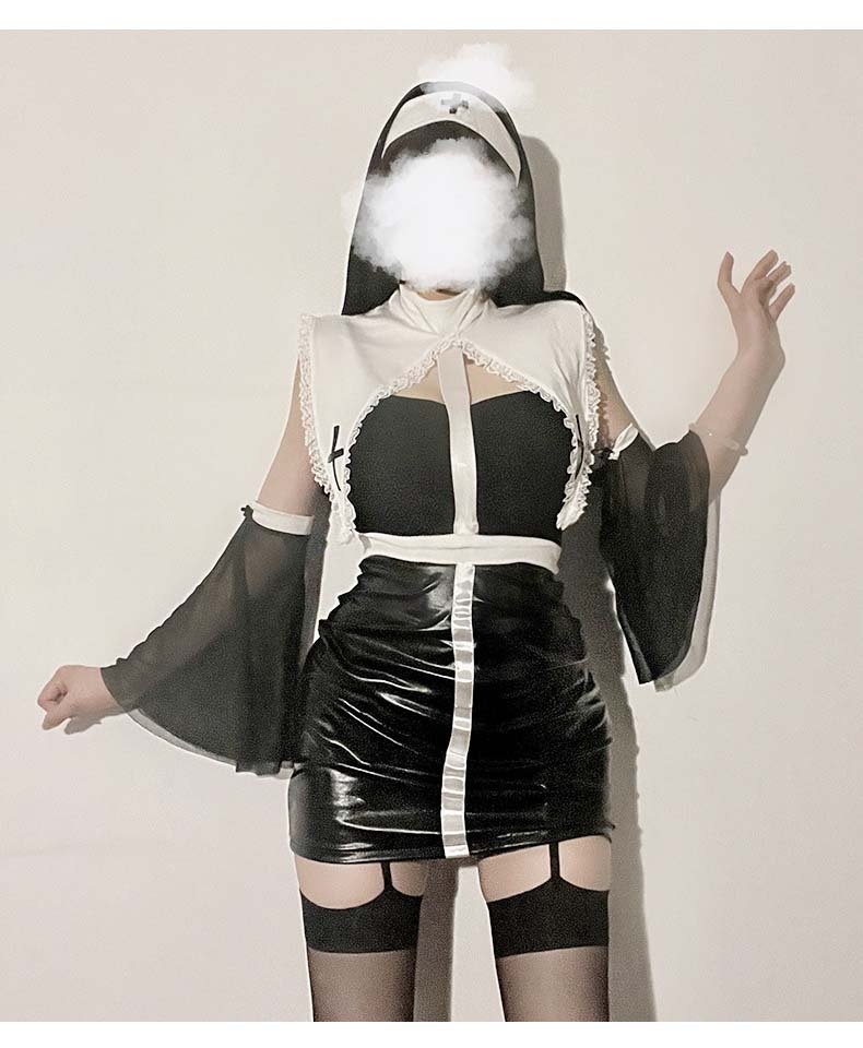 Goth Lingerie Package include: 1 x Cut Out Dress+1 x Wrap Top+1 x Nun Black & White veil+2 x Sleeves+1 x Panty